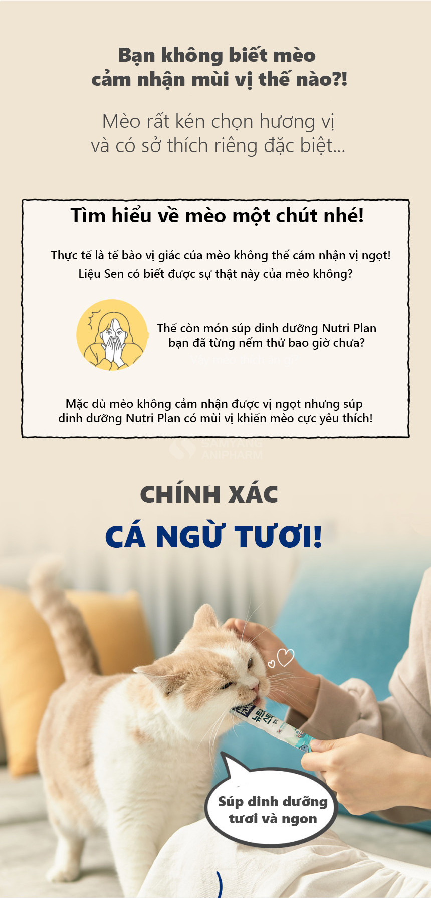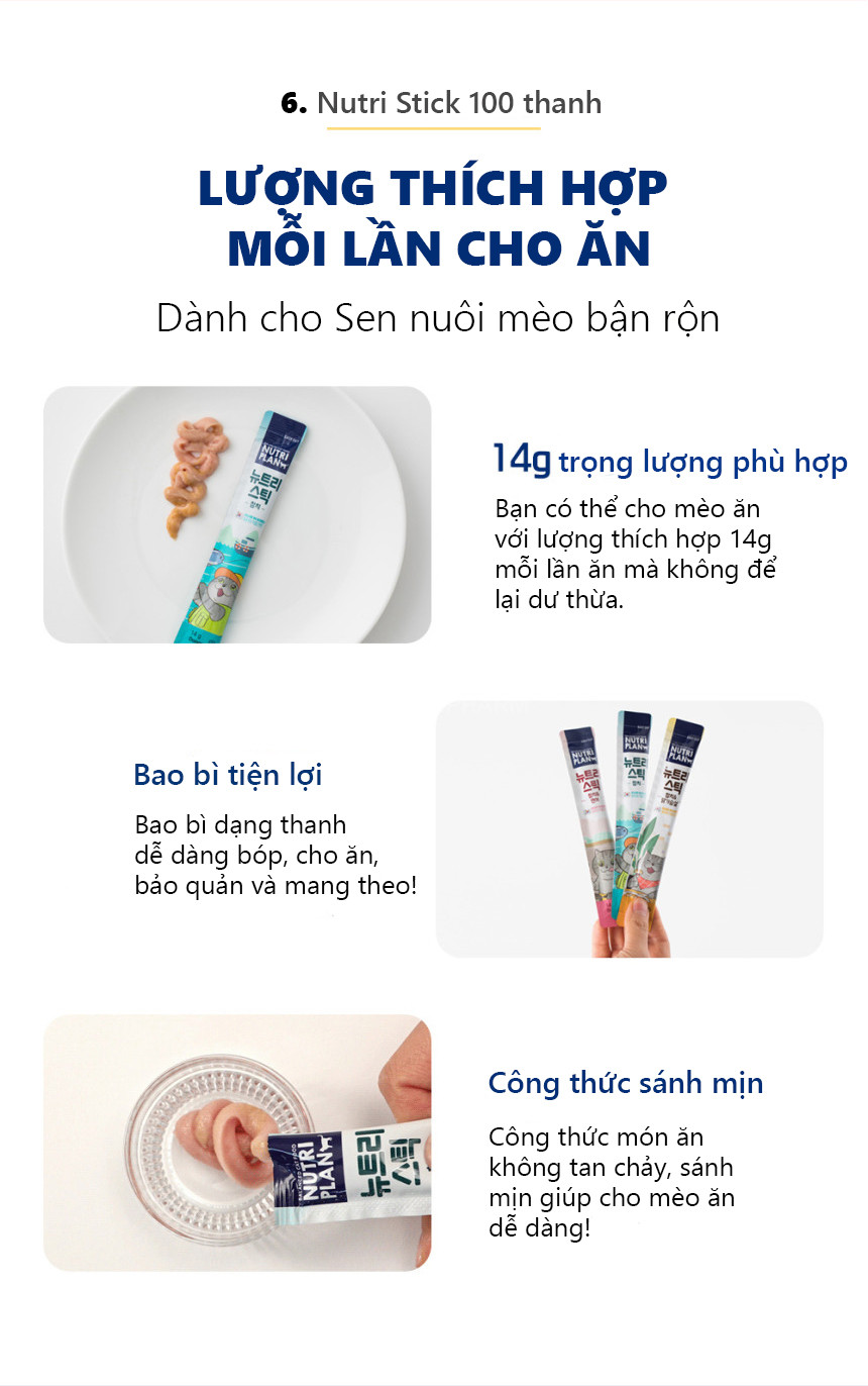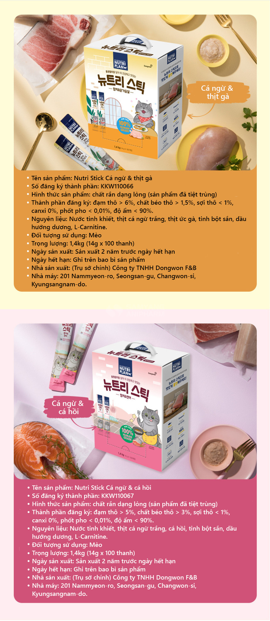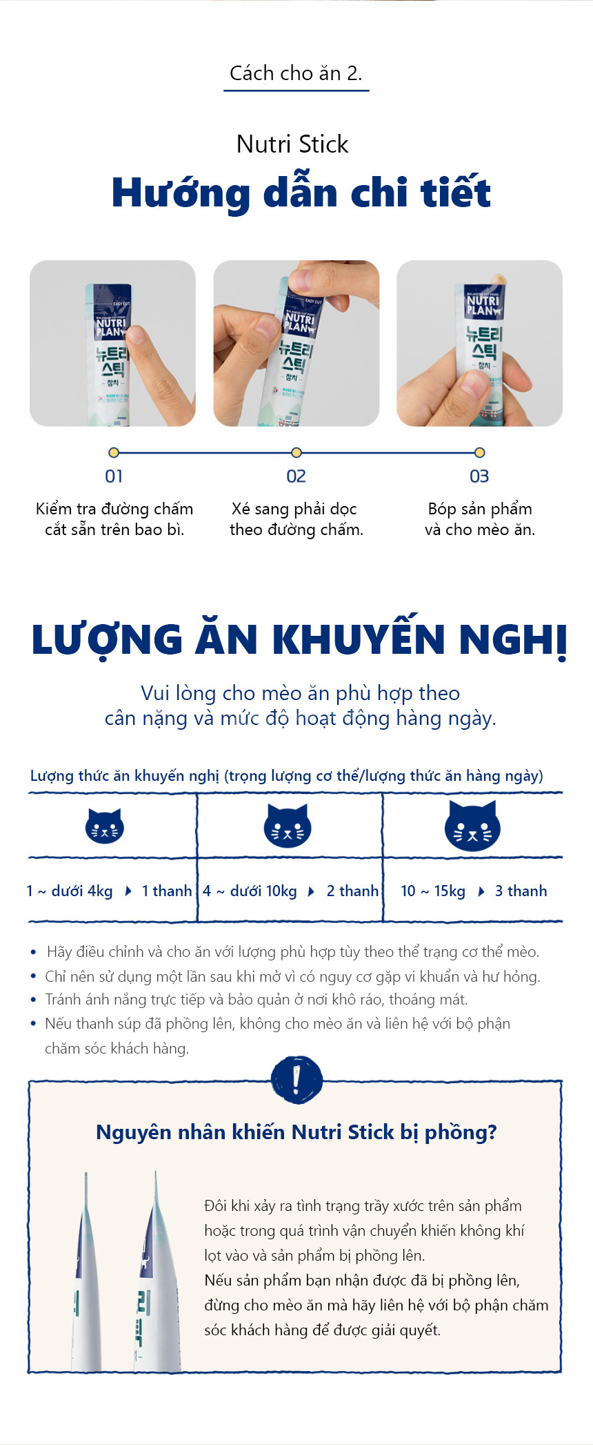 Súp dinh dưỡng Nutri Plan – Nutri Stick là món ăn nhẹ dành cho mèo đứng top 1 thị trường Hàn Quốc. Sản phẩm đã được xuất khẩu sang những thị trường lớn và “khó tính” như Nhật, Trung, Bangladesh. Tại thị trường Việt Nam, Nutri Stick được Samyang Anipharm Việt Nam độc quyền phân phối với hàng triệu sản phẩm đã được bán ra, đặc biệt là được những chú mèo kén ăn cũng vô cùng yêu thích.